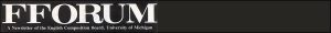 In the introduction to Fforum: Essays on Theory and Practice in the Teaching of Writing (Boynton-Cook, 1983), Patricia L. Stock provides some background to the journal fforum. She had been fforum‘s editor and had selected the essays in her Boynton-Cook book from it. In June, 1979, at the end of a workshop for school and college teachers sponsored by the English Composition Board of the University of Michigan, “one of the workshop leaders, Bernie Van’t Hul, suggested that we continue our mutual discussion and instruction in a newsletter.” His suggestion bore rapid fruit under Stock’s guidance and energy, and the first issue of fforum: A Newsletter of the English Composition Board, University of Michigan appeared in fall of 1979. The journal’s name refers to the classical Greek marketplace where open public discussion took place as well as business transactions. The distinctive spelling borrows from the medieval scribal practice of indicating a capital letter by doubling the letter.