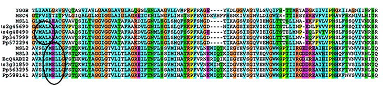 In March, 2006, a Caltech plant biologist was astonished to see that an alignment of protein sequences had arranged themselves into a personal message. She was studying the function of protein in mechanosensitive ion channels, and her computer was applying the standard genetics one-letter code for amino acid residues, where S stands for serine, V for valine, and so on (colors show patterns). But at one point this particular ion channel switched the code to English. As it turns out, the biologist has a colleague named Mala. "My friend Mala is not happy," she said, "but I think the universe wants her to use deodorant." | ||