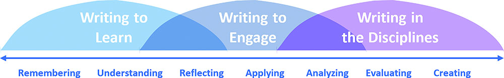 Following Bloom’s taxonomy, we characterize writing to learn, writing to engage, and writing to communicate (writing in the disciplines) as focusing on different parts of Bloom’s taxonomy: