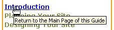 In many cases, you don’t need to click on a link to learn something. Simply moving your mouse over some links and images can cause an informational flag to appear. This can help your readers decide whether they want to click on a particular link—in effect, giving them a preview of what they might find if they did click on it. Even better, it is relatively easy to create informational flags. In a word processor, such as Microsoft Word, you can create flags when you create or edit links. In a Web editor, such as Dreamweaver, you can add flags to images or links with a "title."