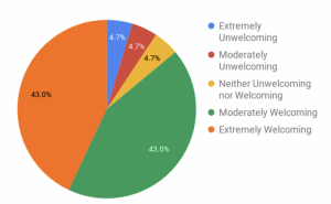 Figure 11. Based on your visit(s) to the Writing Studio, rate your overall feeling of welcome. This figure shows the distribution of responses ranging from “Extremely Unwelcoming” to “Extremely Welcoming.”