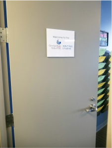 Figure 5. A photograph that shows a door with a sign that says “Welcome to the Writing Studio.”
