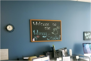 Figure 7. A photograph of a chalkboard sign that says “Welcome to the Writing Studio!”