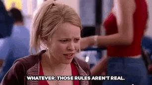 Figure 17. A GIF of a Rachel McAdams scoffing. Includes the text “Whatever. Those rules aren’t real.” From Mean Girls by L. Michaels, T. Shimkin (Producers) & M. Waters (Director), 2004. [Motion Picture]. United States: Paramount Pictures. Copyright 2004 by Paramount Pictures.