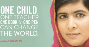 She began by searching for literary quotations from female writers and writers of color, such as 2014 Nobel Peace Prize recipient, Malala Yousafzai, the Pakistani girl shot in October 2009 by Taliban insurgents for championing women’s education (see Figure 1), and 1993 Nobel Peace Prize winner, Nelson Mandela, who spent nearly 30 years in prison for his efforts to end apartheid in South Africa. Slowly, more faces and quotes followed, including authors such as Oscar Wilde, Alison Bechdel, and Leslie Fineberg. However, Leia was aware that some of the students, especially incoming freshmen, might not recognize Wilde, Bechdel, or Fineberg as queer authors. Therefore, she began exploring the possibility of displaying rainbow-colored writing instruments, such as a quill (see Figure 2), stacks of books, and ink overflowing from an inkpot. As her intention was to attempt to make every writer feel welcomed, Leia also made certain to represent the white, hetero, cis-gendered population as well, including quotes from writers such as Stephen King and Tom Clancy. While Leia is happy to report positive reactions from both student writers and fellow consultants to the changes she has introduced, she realizes that the job of highlighting marginalized writers will continue to be a work-in-progress.